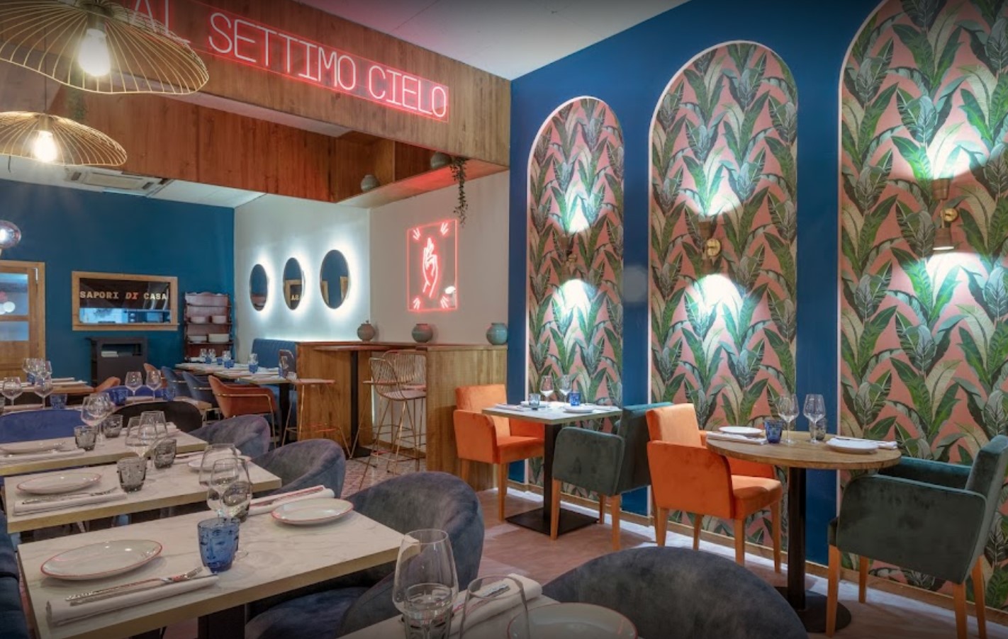 Al Settimo Cielo se localiza en la calle Apodaca de Madrid, un local informal de cocina italiana, sabrosas pizzas y buenos cócteles.
