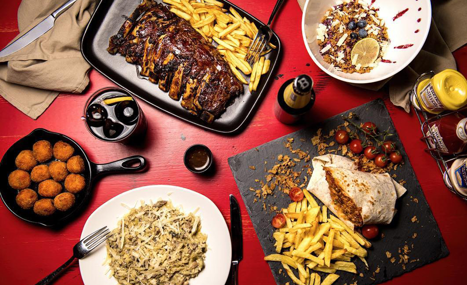 Costillar Jack Daniels. Croquetas. Hamburguesas. Cebolla rellena de rabo de toro.
