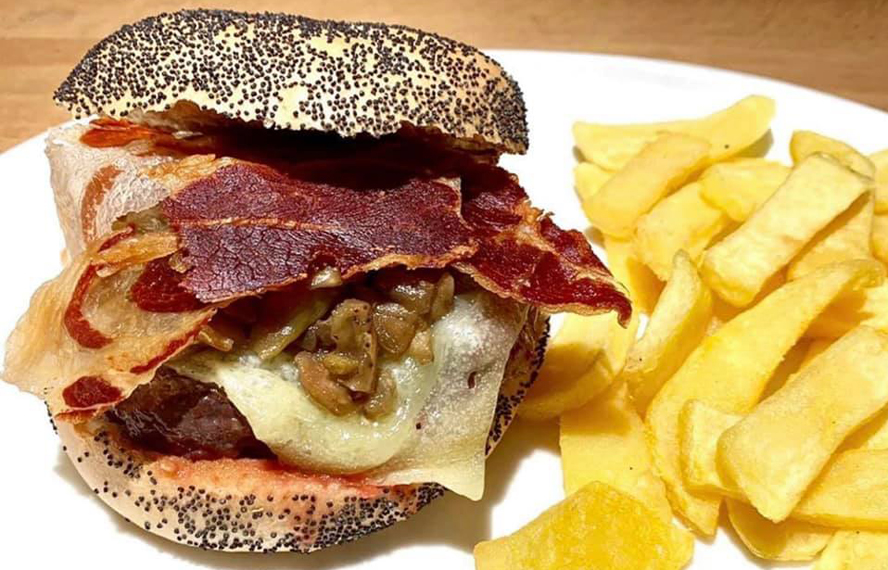 Hamburguesas a la parrilla. Patatas Burgerheim. Croquetas caseras. Ensalada Impresionista. Paleta ibérica con pan de cristal y tomate. Huevos rotos con chistorra. Costillar de cerdo asado a baja temperatura y acabado a la parrilla. Lomo alto de vacuno. Coulant de chocolate.