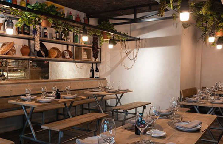 Caraba, se ubica muy cerca de la calle Ponzano de Madrid, un pequeño restaurante de cocina casera de pueblo, elaborada con productos de temporada y frescos.