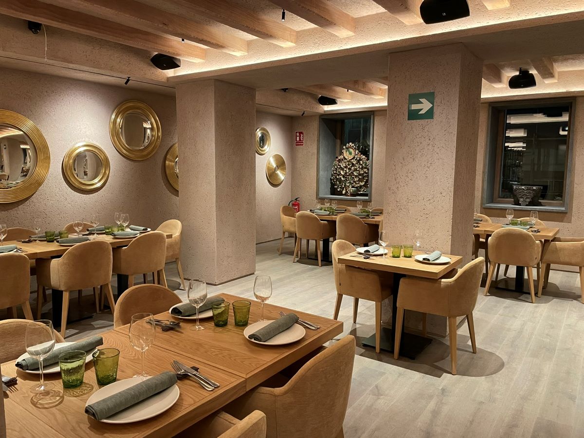 Mención aparte merece el impresionante local de la calle Españoleto, distribuido en dos plantas. En la planta inferior se han acondicionado distintos espacios para ofrecer una zona de copeo y también para celebraciones y reunions, con una espectacular estancia rectangular que acoge una mesa corrida capaz de acoger casi 40 comensales.