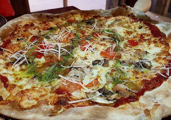 Carpaccio de solomillo. Vitello milanesa. Pizzas Rustiche.