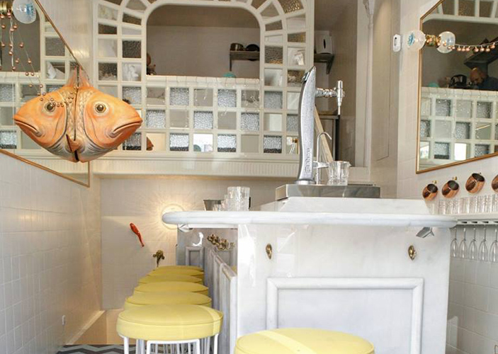 El Local se divide en dos plantas, y dispone de una barra de mármol, que recuerda a las de las pescaderías antiguas, en la que los comensales pueden disfrutar de cómo se elaboran los platos gracias a una cocina vista.