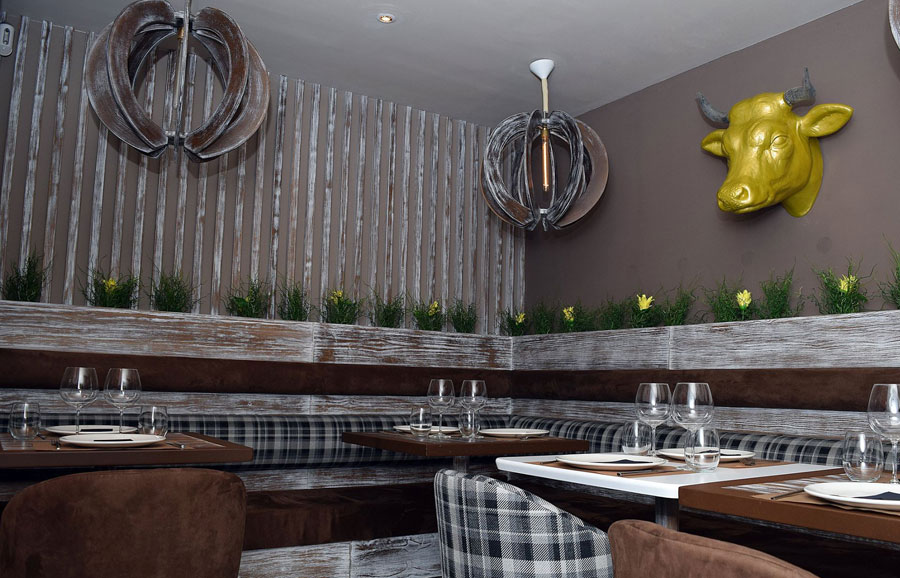 Hamburguesa Puravaca. Croquetas de leche entera de ordeño con lacón. Vaca en láminas finas a la mediterránea.