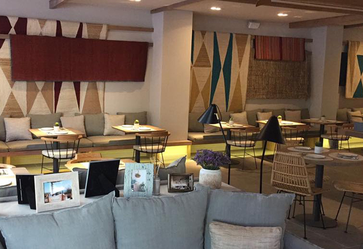Saona Madrid cuenta con distintos ambientes: una zona lounge con sofás para un ambiente distendido y relajado, una barra generosa para una degustación rápida, o una zona con mesas para disfrutar de la oferta gastronómica mediterránea del grupo.