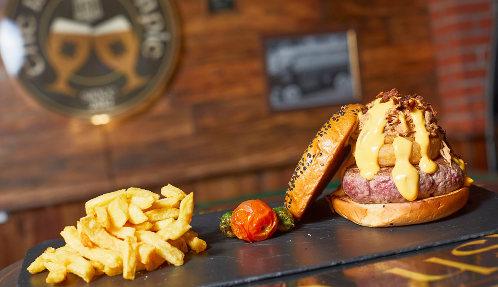 Hamburguesas gourmet y gran variedad de cervezas internacionales en The Irish Temple de la Calle Ibiza 66 de Madrid, en el distrito de Retiro.