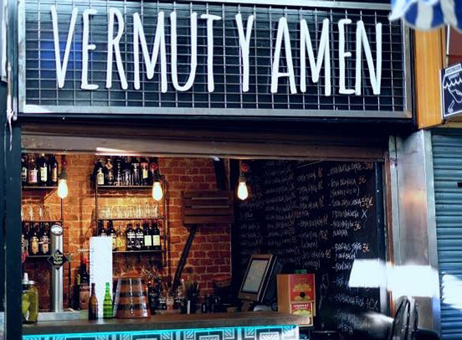 Vermut y Amén se localiza en la primera planta del Mercado Vallehermoso de Chamberí, Madrid. Ofrece gran variedad de tapas tapas, tostas, y por supuesto, vermut.