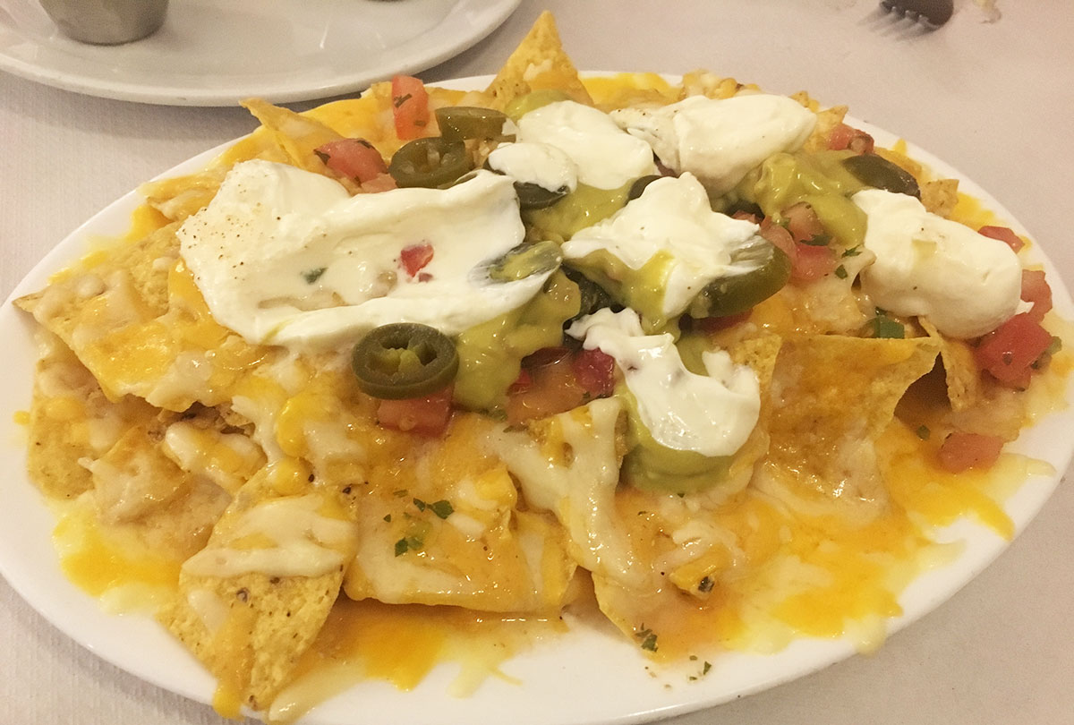 La otra hamburgueda que pedimos fue la doble Southern Jack, enorme, para estomagos jovenes e intrépidos, buena y contundente. Para picar (muertos de hambre tras una espera de 30 minutos largos) pedimos unos nachos completos que tienen la gracia que los «aliñas» al gusto, con los jalapeño, crema agria, guacamole (regulero) y tomate así como unos aros de cebolla, para perdonárselos, los de Tony Roma’s seguro que son también congelados pero está a años luz de buenos.